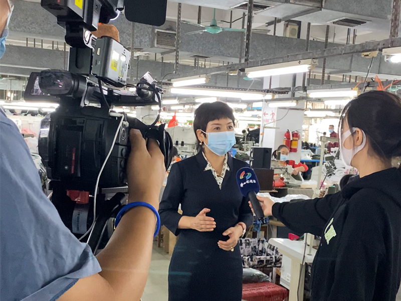 11月3日,佛山電視臺--【小強熱線】的記者到我們睿牛羽絨服工廠進行采訪。