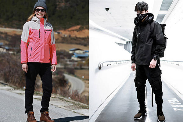 沖鋒衣做到防水并不難,但同時能做到透氣就不那么容易了。數百元的沖鋒衣和數千元的比起來,也許式樣和做工相差不大,差別就在防水透氣的材料上,在保證功能性的同時還要盡可能柔軟易穿,且不容易破損。牌子叫得最響的一種材料是Gore-Tex,只有在千元以上的沖鋒衣上才會配備,原理是其材料孔徑介于雨水滴和汗蒸汽之間,防水的同時可以排汗透氣。The North Face的TNF三合一沖鋒衣生產成本占總價的32%左右,在服裝行業已經算不低的了。