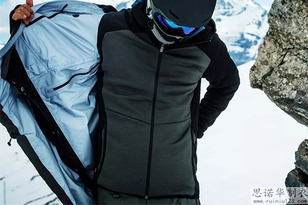 它相當于羽絨服,棉衣和抓絨夾層,負責保溫功能。 采用300克搖粒絨內膽和循環鎖定溫度。
