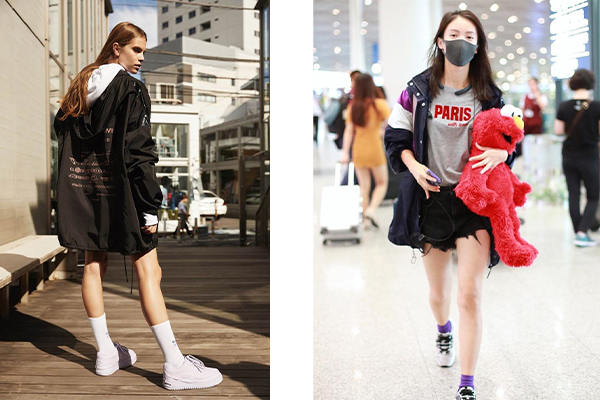 這是滿常見的一款,但同時也是最具風(fēng)格性的。在普通的穿搭,只要套上透明雨衣式的沖鋒衣,都可以化腐朽為神奇!利用內(nèi)搭上衣來避免撞衣的窘境,如圖左整套式的透明搭配,以頭跟腳的黑色配件來強(qiáng)化對比;圖右則是在亮橘色的衛(wèi)衣外,罩上透明黑邊的沖鋒衣,點(diǎn)亮了原本較單調(diào)的穿搭;圖中的下身選擇簡單的五分短褲,加以凸顯上半身的半透明沖鋒衣之特色。