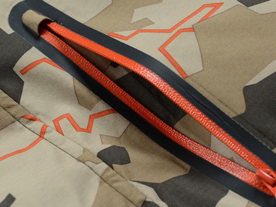• 鐳射切割:衣服口袋采用鐳射激光精確切割,再使用膠條密封,在滿足防水的功能下又不失美觀。